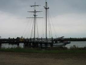 Die middag kwam er een grote tweemaster vlak voor ons aan de aanlegsteiger meren.