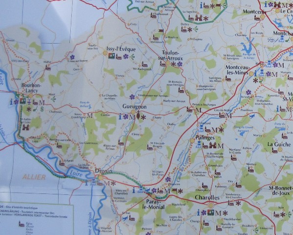 Langs het kanaal dat eerst heel breed was en bij een splitsing na een km wat smaller werd reden zij westwaarts richting Bourbon-Lancy.