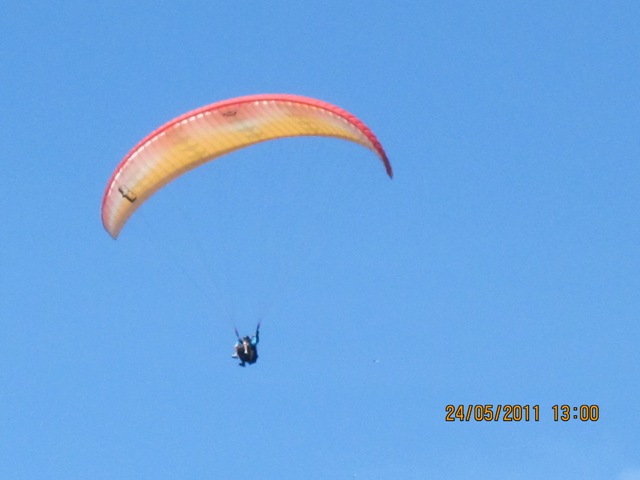 Zij zagen ook drie parasailers van de westzijde starten en daarna boven hun hoofden zweven.