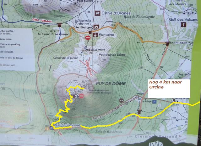 Zij volgden eerst de weg met de naam Puy de Dome en volgden die in de goede richting. Zij gingen eerst 50 m omlaag en na voorbij de tweede rotonde te zijn gekomen na 3,5 km waren zij op de zelfde hoogte.