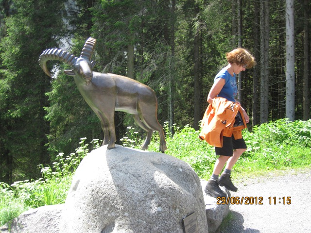 Bij een toeristen kiosk en restaurant was op een pleintje een bronzen beeld van een steenbok. Die keek ondeugend naar de wandelaars als die voorbij kwamen.