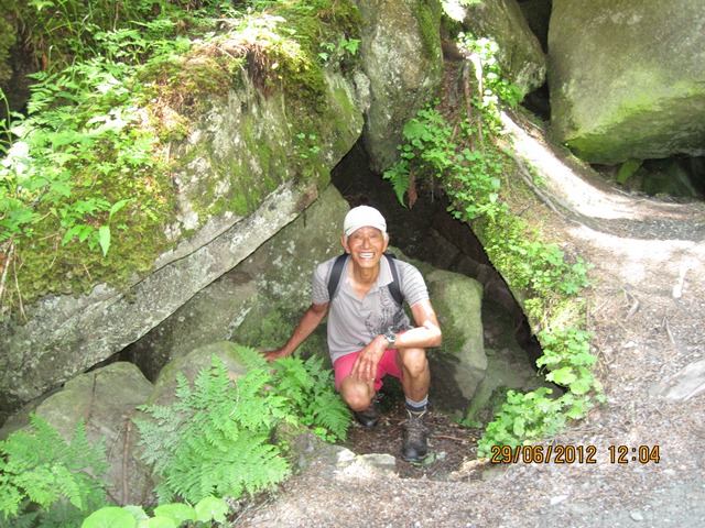 Op een gegeven moment zag Ton een rotsblok en wilde hij er boven op klimmen. Na een paar pogingen lukte het hem eindelijk om er bovenop te komen.