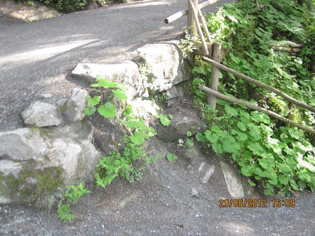 Het pad was goed met fijn steenslag geplaveid. De regen kon zo direct de bodem in druipen en als het toch te veel was hadden de bouwers er goten overdwars gemaakt