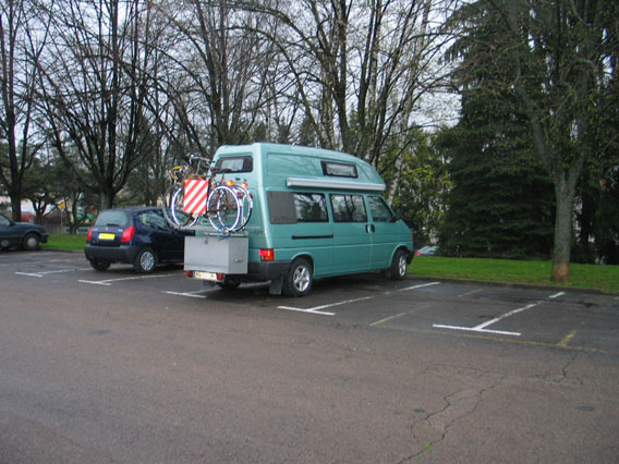 Maar het servicepunt bij parkeerlaats Cambas bij de afslag Lons-le-Saunier was niet zo gemakkelijk te vinden. Daarom besloten Ton en Toos om mij bij een woonwijk op een parkeerplaats neer te zetten nabij een groenstrook.