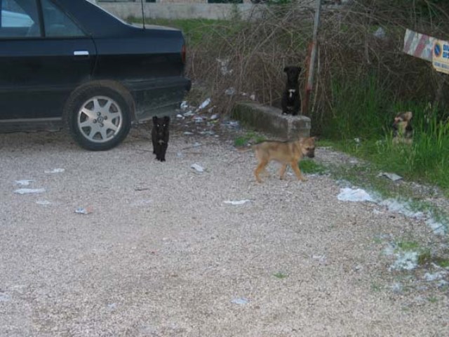 Of het nu kwam omdat Toos zo lekker geurig gekookt had of door iets anders, wij weten het niet. Maar na het eten kwamen de twee herdershondjes weer opdagen en zij namen twee broertjes of zusjes mee. Zij bleven dicht bij ons spelen totdat hun bezorgde zogende moeder hen kwam terughalen. Zij verdwenen door een gat in de afrastering achter de ingang die door de ketting was afgesloten.