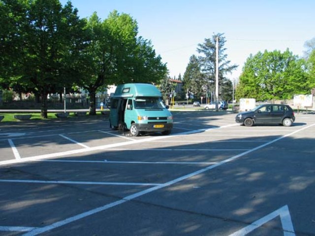 Ton en Toos gingen naar een camperstaplaats zoeken en gingen vanaf het centrum naar het oosten. Eerst dachten ze een plek gevonden te hebben achter een hotel maar die was bedoeld voor hotelgasten. We gingen nog verder naar het oosten en zagen een P van parkeerplaats. Het was