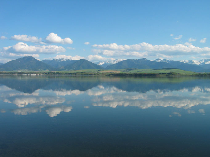 Vergezicht op de Lage Tatra's vanaf de noordoever van het Liptovska meer