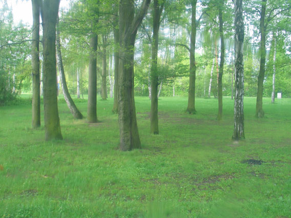 Wij gingen via de oude wegen naar Neurenberg. Voor de stad keek Ton op een informatiebord op de plattegrond van de stad waar de staplaatsen te vinden waren. Toos had in het camperboekje gelezen dat je bij de Wohrdersee kon gaan staan of anders bij Volkspark Dutsend Teich. Wij dachten dat wij bij de Wohrdersee aankwamen toen wij een plasje tegenkwamen maar het bleek pas het waterje te zijn nabij het stadion van Neurenberg. Het zag er niet zo vrolijk uit en Toos wilde daar niet in de buurt gaan staan. Dus reed Ton mij door de stad terug naar het eerste plekje dat in het camperboekje stond bij Volkspark Dutsend Teich. Het was een mooi park in de buurt van het Congresshotel Mercure. Het was zo'n mooie plek dat ondanks de regen wel 20 campers er reeds stonden. Het was uiteindelijk droog maar de plek waar ik moest staan was door een grote plas bezet. Daar moest ik met mijn linker wielen in de plas staan zodat Ton de blokken er ook niet onder die wielen kon zetten. Het gevolg was dat Ton's bedzijde lager kwam te liggen dan die van Toos.