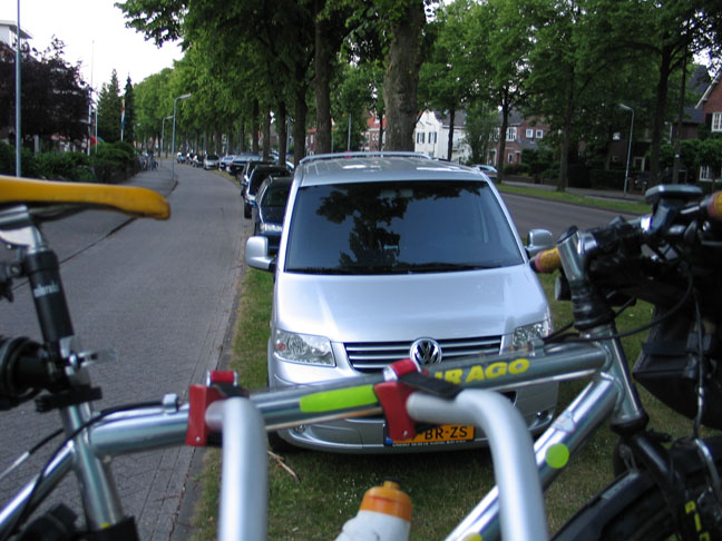 Toen hij en Tiga bij mij terugkwamen bleek er een hele rij auto's van bezoekers van de jubilerende dame en haar man achter mij te zijn neergestreken.