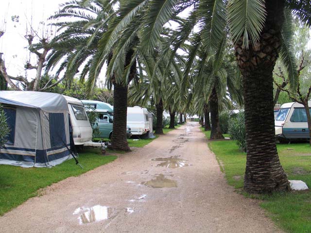 Het was een super de luxe camping met veel palmbomen en veel permanente bewoners. De dienstdoende jongeman bij de receptie zei meteen dat hij net twee dagen daar werkte en nog niet alles wist. Want toen Ton vertelde dat hij met Camping Cheques betaalde moest hij het toch weer eens vragen aan de wat oudere dames of het wel kon. En toen Ton vertelde dat hij een hond bij zich had moest er weer geconfereerd worden in het Catalaans. Ton verstond nog wel het een en ander want hij had veertig jaar geleden twee maanden in Barcelona gewerkt als stagiair dus begreep hij dat hij eerst te voet de situatie kon bekijken en daarna kon zeggen welke plek hij gekozen had.