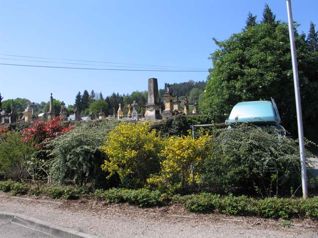 We gingen toen een heuvelachtiger gebied in en tegen siesta tijd kwamen wij bij St.Céré aan. Daar zochten wij naar de camper staplaats Het bleek een dorpspleintje te zijn dicht bij het kerkhof en een gebouw van de plaatselijke rugbyvereniging.