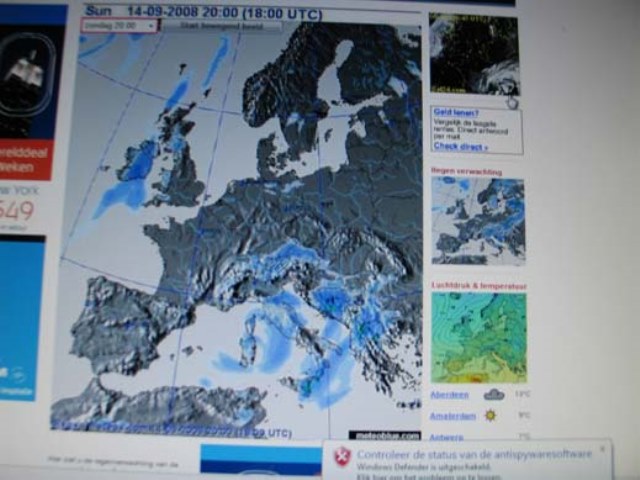 Ton had een foto genomen van de weersverwachtingen op zijn computerscherm en die in zijn laptop gezet zodat hij er nog drie dagen er goed naar kan kijken.