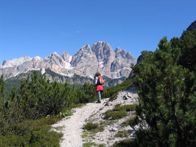 liepen ze op richting het noordwesten. Het pad ging door een bos en waarschijnlijk langs de voet van de berg Faloria.
