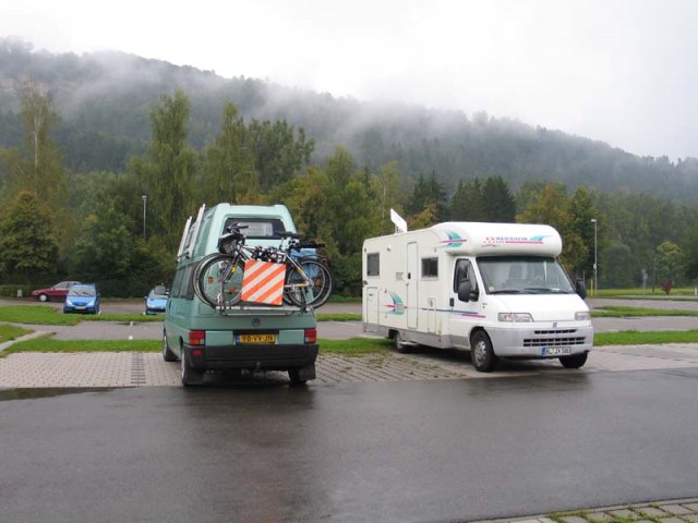 Na bij de grote Lidl nog wat proviand gekocht te hebben gingen wij verder naar het plaatsje Oberndorf. Daar werden we naast het zwembad heen gedirigeerd