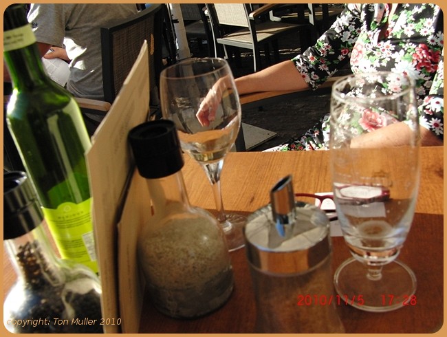 Waar wij onze salades en de fles Rioja