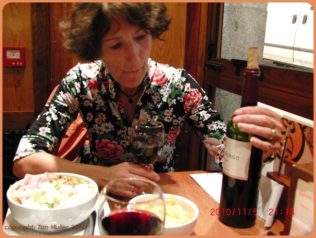 In de avond bij DEmontaditos gegeten, twee salades en een fles wijn. Het was een Spaanse keten waar zowel jongeren als oudjes konden eten of drinken en heel lang konden blijven zitten.