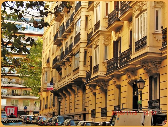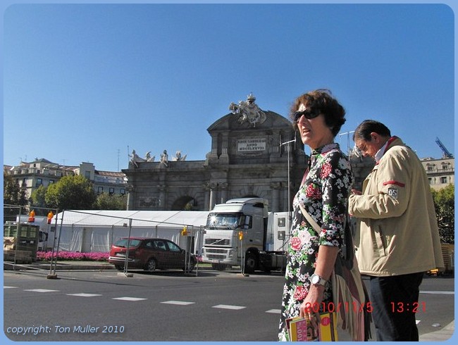 Daarna de route uitgekozen die via de Puerto d'Alcalá naar het noorden ging waar wij in een winkelwijk(B) terecht kwamen.