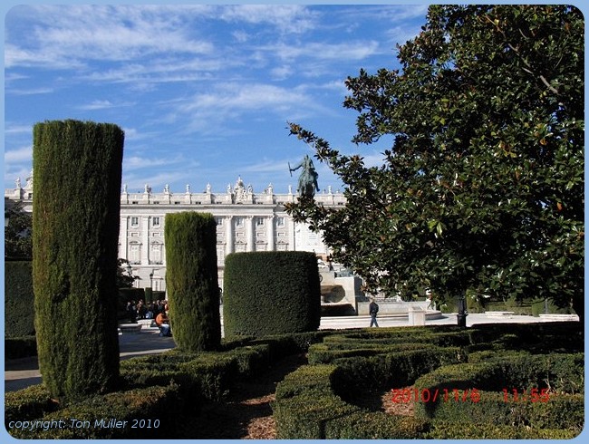 Naar het westen gelopen en via de kathedraal (B) en het paleis met 2800 kamers (C) en de beelden (D) naar de plaza d ' Espagna (E) gelopen.