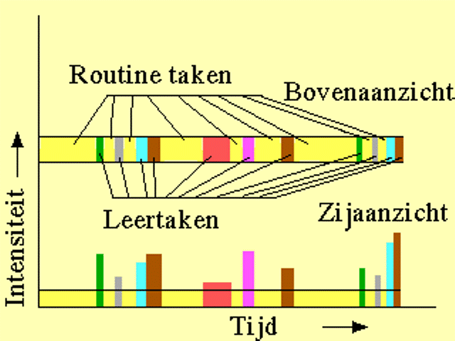 Als je op deze manier gewend bent te leren dan is het vrij normaal dat je je tijd indeelt om veschillende dingen ogenschijnlijk tegelijk te doen. In werkelijkheid deel je je tijd in onderdelen en in ieder tijdsonderdeel doe je wat anders. Of je nu aan een lopende band werk verricht of een team van managers begeleid, je kunt routinewerk meestal met minder denkinspanning doen. De oplettendheid voor wat je doet moet je in ieder geval niet laten verslappen. Het zou een ramp zijn als je bv. als vluchtverkeersleider bij een vlieghaven je aandacht voor je werk er niet bijhield.