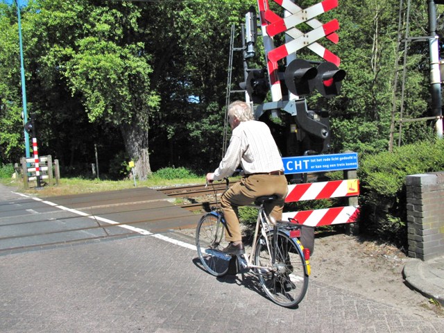 En net toen wij bij de spoorwegovergang aankwamen hoorden wij luid gerinkel