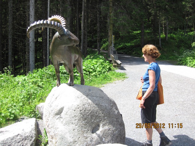 Bij een toeristen kiosk en restaurant was op een pleintje een bronzen beeld van een steenbok. Die keek ondeugend naar de wandelaars als die voorbij kwamen.