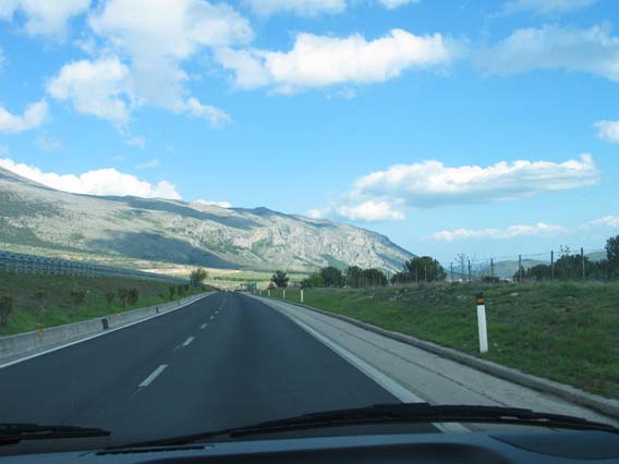 De route was de omgekeerde richting die Patton zo'n 60 jaar geleden had afgelegd. Maar nu hebben de Sicilianen een prima snelweg door die streek aangelegd.