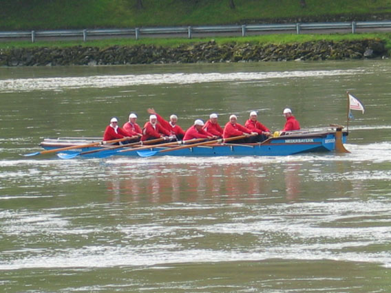 Vroeg in de ochtend toen Ton Tiga uitliet heeft hij foto's van de Donau en het dorp gemaakt. Hij zag ook een brede roeiboot met negen personen bemand voorbij varen. Het was geen acht met stuur achter elkaar maar vier roeiers roeiden zij aan zij met een boordriem, het was wel een stabiele boot. Een van de roeiers zwaaide naar Ton