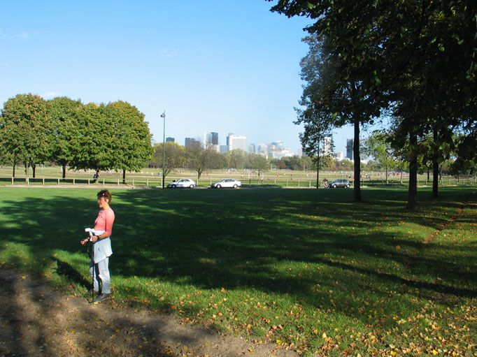 Zondagochtendwandeling in het Bois de Boulogne, op de achtergrond Puteaux
