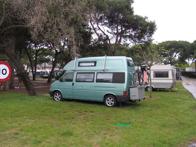 Ze gingen dus te voet de camping door, onder de spoorlijn en verder naar de uiterste noordgrens van de camping. De camping was grotendeels achter de spoorlijn gesitueerd tot het strand. Ne noordgrens was ook de zuidgrens van een andere camping. De laan waar de staplaatsen voor hondenliefhebbers was was ook de uitsterste rij in het noorden. Ton en Toos wandelden tot het strand en zeiden dat dat wel een goede plek was waar ik kon staan. Maar toen zij bij receptie van de camping zeiden dat zij plek dicht bij het strand wilden benutten zei de jongeman na enig gevraag aan de oudere dames dat het vier Euro's meer kostte. Daar hadden Ton en Toos geen zin in en dus gingen wijn naar de eerste de beste plek in de achterstev rij van de camping waar wij wel mochten staan.