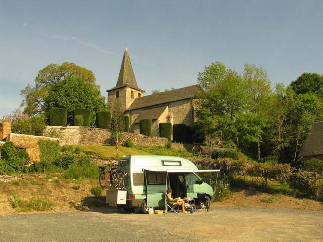 Daar konden wij als enige op het pleintje achter de supermarkt onder het chateau staan.
