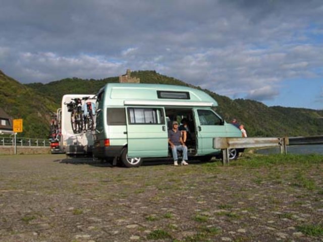 Wij gingen weer verder langs de Rijn tot Rüdelsheim. Het was een mooie route en het weer bleef nog steeds mooi. Af en toe maakte Ton foto's van de burgten, de passerende schepen, roeiboten en kanovaarders. Af en toe kwamen wij ook nog campers tegen.