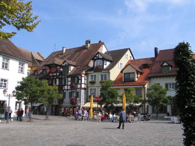 Aan de zuidkant van het pleintje is een uitzichtpunt met een mooi uitzicht op de Bodenzee.