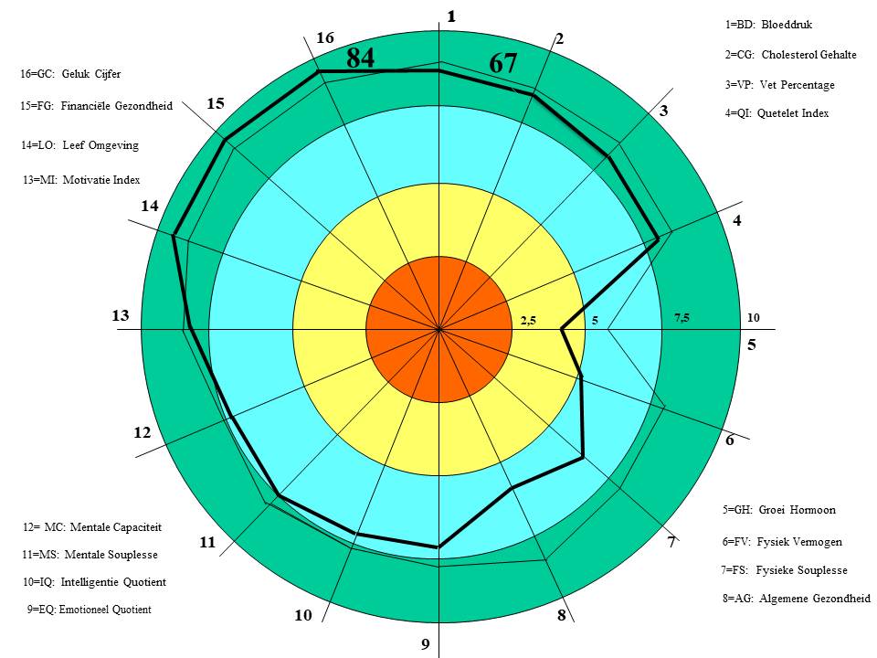 Als je honderd wilt worden moet je zorgen dat je in alle 16 voornaamste kengetallen een voldoende haalt. Als je in één