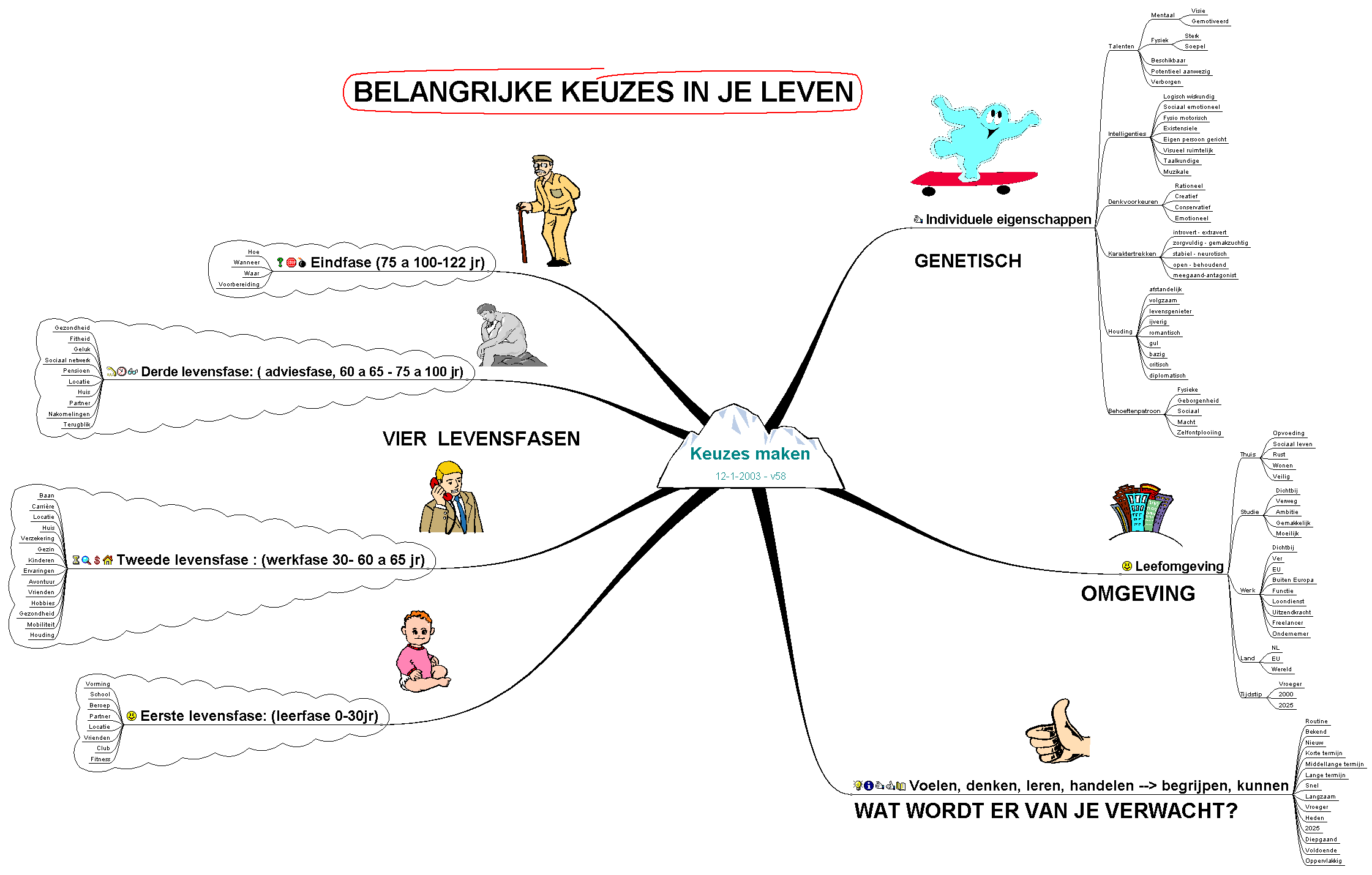 Een mindmap van de belangrijke keuzemogelijkheden in je leven.