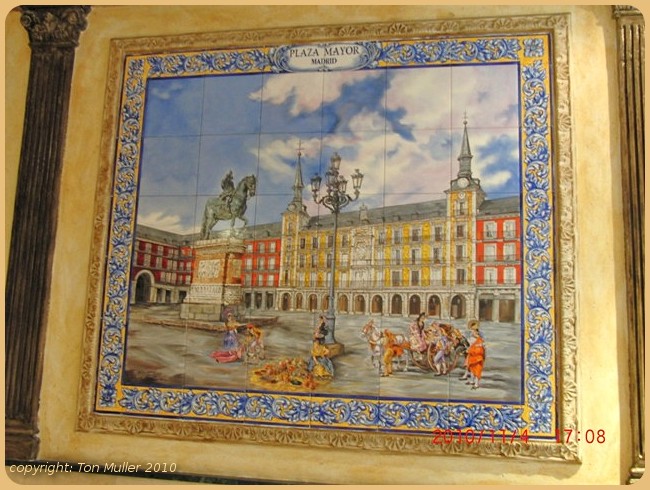 In de avond naar Plaza Mayor gelopen dat op 100 m afstand van het hotelletje lag. Na twee keer om het plein gelopen te hebben