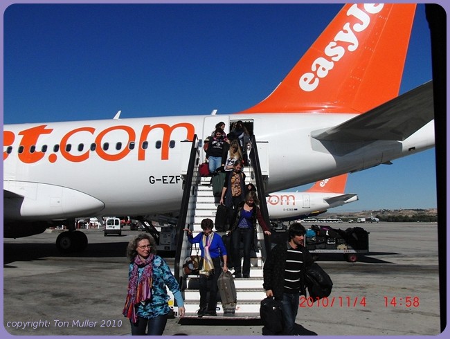 de Easyjet balie. De koffer woog precies 20,00 kg dus die kon zo naar het vrachtruim.