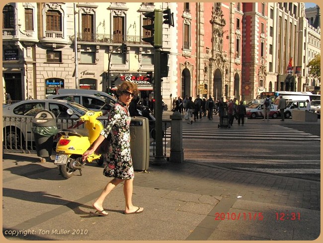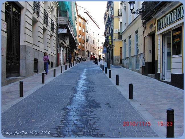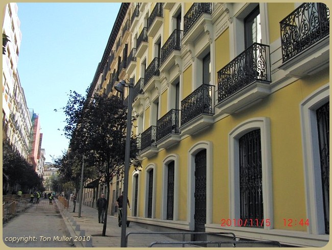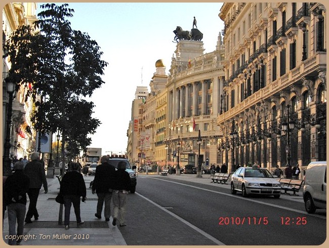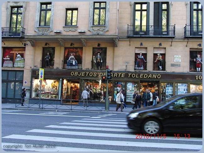 Daarna de route uitgekozen die via de Puerto d'Alcalá naar het noorden ging waar wij in een winkelwijk(B) terecht kwamen.