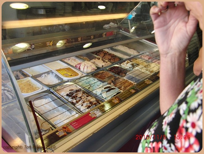 In onze wijk zagen wij nog een ijstent met verschillende soorten ijs.