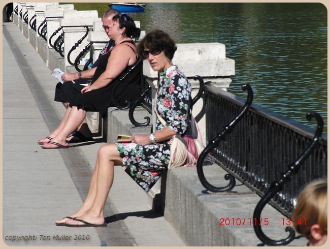 Daarna naar de tweede ingang van het park van de "Gegoede oudjes" (C) gewandeld en om het meertje gewandeld waar vele roeibootjes waren.