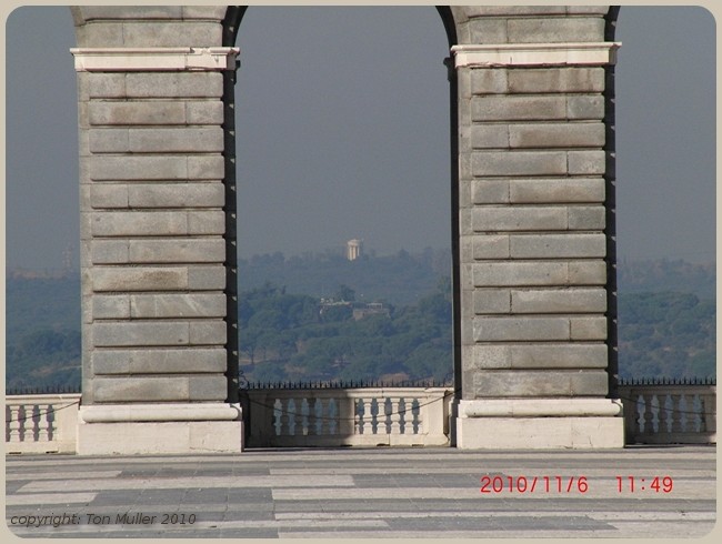 Naar het westen gelopen en via de kathedraal (B) en het paleis met 2800 kamers (C) en de beelden (D) naar de plaza d ' Espagna (E) gelopen.